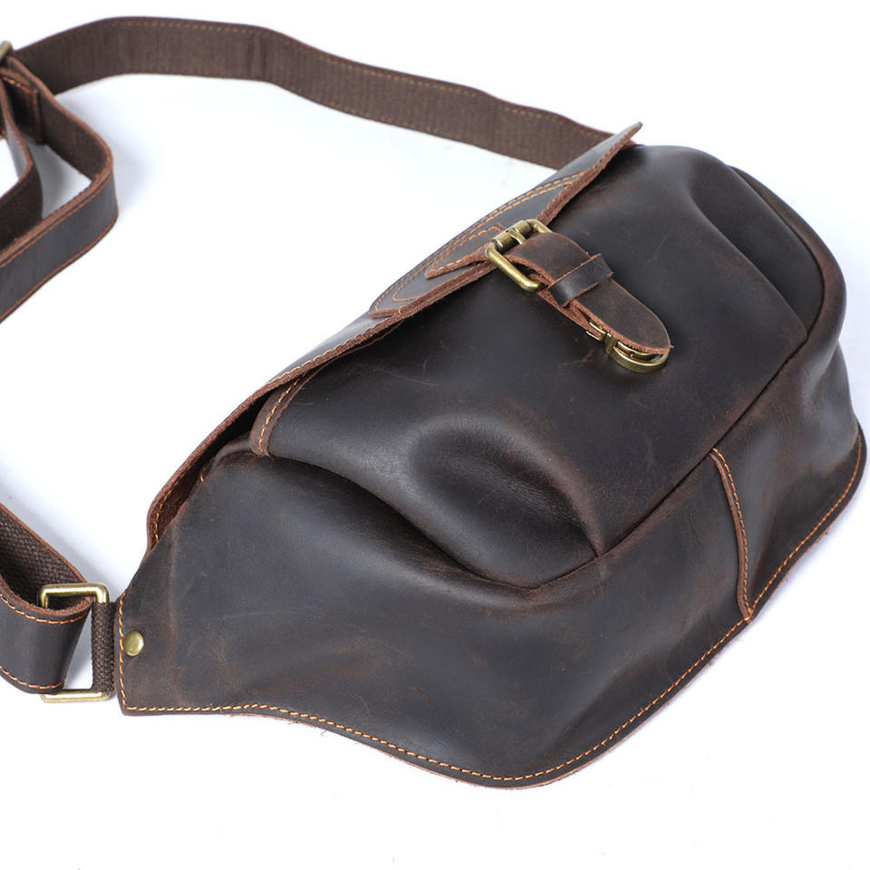Vintage Cowhide Leather Motorcycle Zipper Messenger Shoulder Pouch Waist Backpack Bag